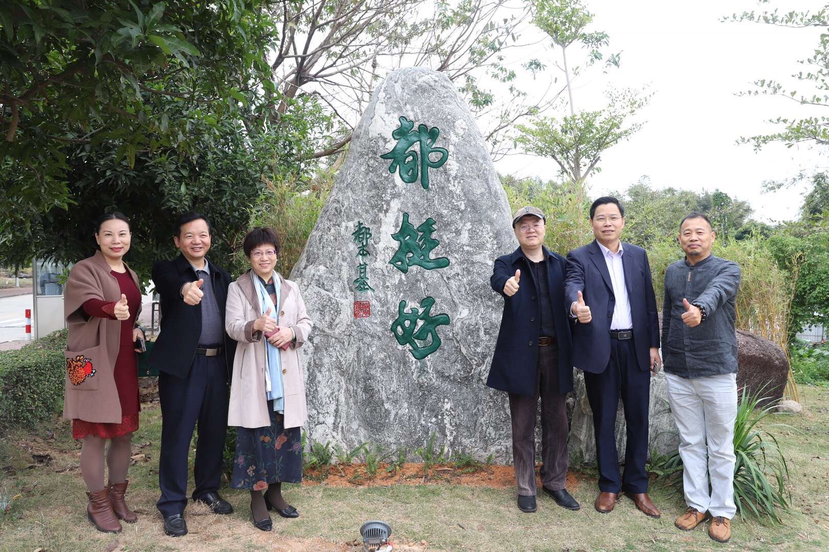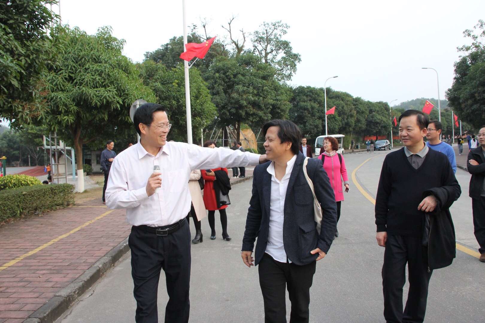 12月31日下午,应邀来校参加当晚“开放之光”新年诗会的漫画大师方唐,著名诗人黄礼孩,教育文化名家李萍、徐南铁,工艺大师黄修林、莫宏伟、邓泰等十余人,以及仲恺农业工程学院党委副书记李海燕等,在学校党委书记罗海鸥的生动讲解下,饶有兴致地参观了中山校区文化景观。李海燕副书记曾长期在我校任职,李萍、黄修林和莫宏伟等也曾来访我校,对近两年来中山校区环境的显著改善深有感触,连表赞许。黄礼孩对文化特别敏感,充满诗意地说:“校园必须是一个精神场所,必须是一个能量场。它是知识的、梦想的、青春的、生机勃勃的、未来的。你们中山校园是极具特色的,其中一个亮点就是不同石头根据其形色及校园结构摆放得错落有致、恰到好处,体现了空间逻辑。名家大师受罗海鸥书记对文化景观建设孜孜不倦的执着所打动,免费为学校题写的字充满震撼力。我们看后,眼光也就得到新的凝视。”中山大学原党委副书记、副校长李萍对校园文化建设表现出极为强烈的兴趣,在对比思考中对“什么是教育的本”有了更深一层的感悟:“跟着海鸥书记的教育步伐,我两次走进这个校园,育人环境质的提升让我惊讶让我赞!两年前尚赤裸耸立的教学楼如今四周都披上了绿色的外衣,漫长的校道两旁环境更美了、视野也更开阔了。更有意味的是,徜徉校园,不经意中就会与文化及教育大家相遇:一块块承载历史与文化的巨石上镌刻着中华优秀传统文化发展脉络与大学育人之经纬。我豁然开朗,感悟到这才是真正的教育。”广东省文联原副主席徐南铁在参观时生成了一个新颖的观点:“大学的校园不仅仅关乎面积、容积和环境,还体现为文化。在校园景观文化方面下功夫,也属教育的题中之义。”李海燕看到校园的变化极为兴奋,即兴赋诗表达她的感动:“奇石书就韵自生,近观远望有气神。低吟浅诵犹在耳,春雨润物静无声。”陶艺大师、华南理工大学陶艺研究所所长黄修林则赞叹道:“你们校园的景观艺术,以‘石’为载体,选择不同的造型,不同的肌理,置放在校园不同的环境里,像一幅幅大写意立体的画。同时在石头上注入名诗、名句,仿佛看到远近不同的历史,跳跃的乐章……”陶壶大师莫宏伟作了个很好的比喻:“这些无言的石头好比我们的教育者,不问回报地默默耕耘,润物无声。同时也是师生的好友,默默地陪伴鼓励着大家积极地向上走。”国家技能大师邓泰充满敬意地说:“‘以美育人,以文化人’作为现代校园环境设计的主流理念,在罗海鸥书记主持的中山校区校园文化建设中体现得淋漓尽致。校园里有古木虬枝,也有婆娑绿叶;有国画韵味,也有油画色彩和层次。加上一块块或聚或散的石头,间中配以植物注入灵动,整体疏密有致,这就是‘美’。石头全部成自自然又造型独特,有的似长者、智者,有的像马头、龙虎……简直是天赐神品。刻上经典名句后,诉说着教育故事,传递着哲思力量,此即为‘文’。有朋友看后不由拍案叫绝,慨然发出‘读中山校区的石头胜读十年书’的深深感叹。这是美与文完美结合、建设经验富有推广价值的经典案例,非深厚的国学功底、艺术修养和浓烈的教育情怀无以为之!”来宾们纷纷赞赏:“以景感人、以美育人、以文化人”已成为我校育人教化的一大特色。