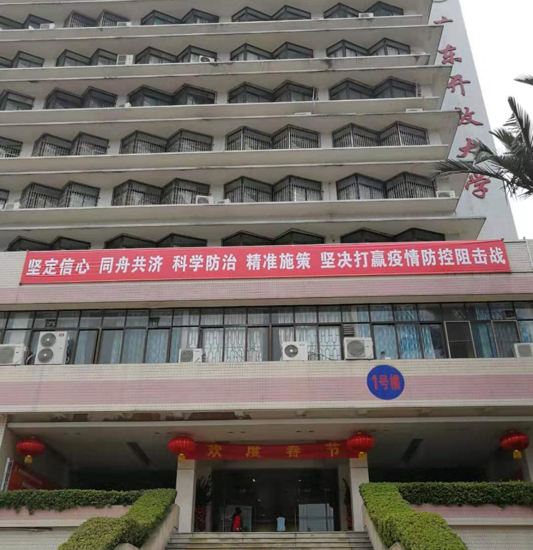 自1月21日收到省教育厅关于做好新型冠状病毒感染的肺炎疫情防控工作的紧急通知以来,学校党委高度重视,迅速成立疫情防控工作领导小组,带领全校师生员工打响了疫情防控战。一是全力压实责任,加强组织领导。学校编制了疫情防控工作职责表、责任人名单、任务分工表以及组织机构三级网络信息表,确保防控责任归属清晰,确保防控任务落实到每一个环节、每一个人。二是全力加强联动,筑牢防控工作防线。学校全体干部师生,属地政府和教育、卫生等部门工作人员,以及校内的后勤、物业、安保等人员,通过微信、电话及必要的会面等保持紧密联系,充分沟通交流,24小时不断线,筑起学校防控工作新长城。三是全力落实落细,维护校园安全稳定。学校发布防控工作通知、开展“四精准”摸查、制定开学方案和“六分”返校方案、设立独立健康观察间、购置防控物资、实施体温检测、提供心理疏导服务……一项项用心的工作,把上级和学校领导小组的要求落实落细,在疫情严峻的形势下依然有效维护了校园安全稳定。四是全力加强宣传引导,传播抗疫正能量。学校面向全省开大体系和理工师生员工发出疫情防控倡议书,张贴防护指引,教育大家增强自我防护意识和能力,切实维护生命安全和身体健康;响应国开号召,采购防控物资用以捐赠并向基层开大(电大)发出捐赠防控物资倡议书,大力支援湖北电大和武汉电大等兄弟院校做好抗疫前线工作。五是全力发挥办学优势,服务社会大众。学校坚守“办好老百姓身边的大学”定位,充分发挥人人皆学、处处能学、时时可学的开放大学优势,把精心打造的习近平新时代中国特色社会主义思想55集系列微视频、广东开放大学本科课程以及广东老年大学的音乐、器乐、舞蹈形体、美术书法、体育、人文修养等高质量课程通过网络向社会免费开放,满足大众居家防护和多样化学习需求,实现“停课不停学”。