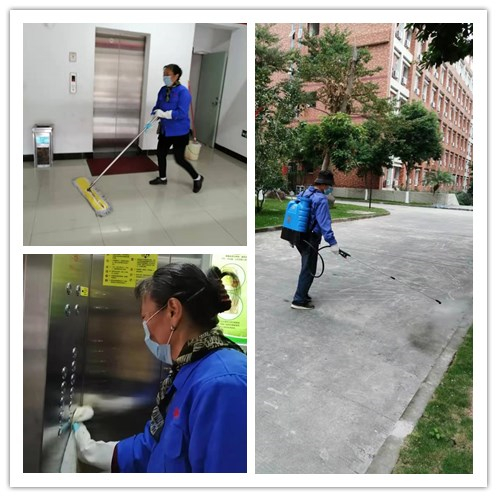 宿舍保洁工、校园清洁工等临聘人员对校园公共区域全面消毒