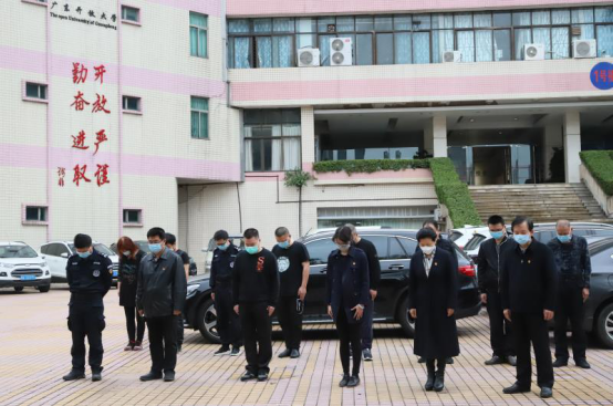 4月4日清明,天空迷蒙阴郁,愁雨欲下,让这个遥寄哀思、悼亡怀人的日子变得格外沉重。上午9时58分,学校在广州校本部和中山校区同时举行哀悼活动,深切悼念新冠肺炎疫情斗争牺牲烈士和逝世同胞。学校校长刘文清、副校长瞿志印,有关单位(部门)负责人、在校师生及家属、值守干部及安保人员等参加活动。
