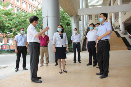 5月15日上午,中山市副市长徐小莉在五桂山镇党工委书记冯金怡和市教体局副局长黎国喜陪同下,来到我校中山校区检查疫情防控工作。学校副校长、疫情防控工作领导小组副组长瞿志印,党政办、管委办(保卫处)、学生处、后勤基建处等部门陪同了检查。