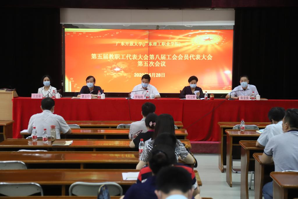 在全国两会召开之际,在筑牢疫情防控防线和做好学生返校工作的特殊时刻,5月28日下午,学校迎来第五届教职工代表大会第八届工会会员代表大会第五次会议。校领导罗海鸥、刘文清、瞿志印、孙平、陈显强和王宜奋出席会议。基于疫情防控考虑,本次会议的132名教代会代表和列席代表分别在广州校区主会场、分会场及中山校区分会场采用远程视频的方式参加大会。开幕式由瞿志印副校长主持,大会在庄严的国歌声中拉开帷幕。