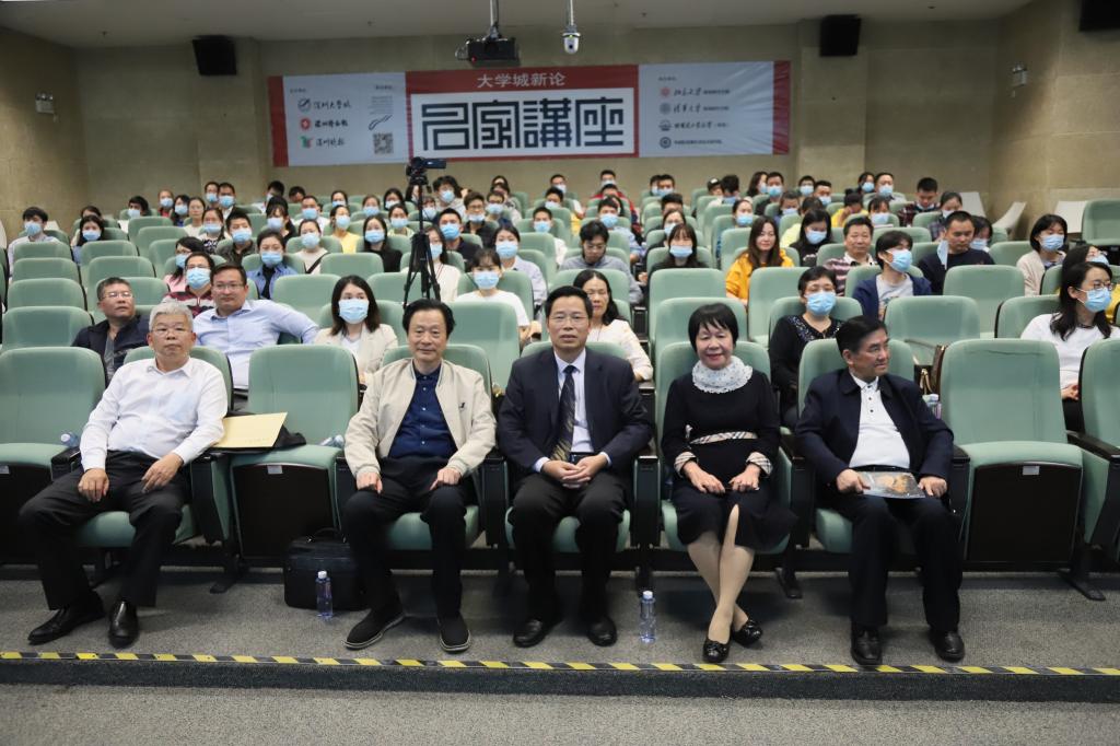 罗书记的演讲题目是《培根固本铸魂 育人化人树人——大学文化景观营造的思考和实践》。罗书记谈古论今,从全世界最古老的大学意大利博罗尼亚大学,到牛津剑桥和哥伦比亚大学;从北大清华,到川美国美,再到岭师开大,罗书记用一张张图片和一个个故事,阐述着“一流的大学要有一流的文化景观,要有高品位的校园文化,营造春风化雨、润物无声的育人环境和氛围,使学生获得文化的熏习、审美的陶冶、情志的感化、境界的提升和行为的养成”的观点。罗书记以自己多年在岭南师范学院和广东开放大学(广东理工职业学院)任主要领导的工作实践,讲述文化景观营造给校园带来的深刻变化及其对落实立德树人根本任务,实现“以美育人、以文化人”的重要作用和深远意义。来自深圳大学城各院校师生、深圳市民读者、嘉应学院校友会深圳分会的校友等两百余人聆听了精彩的讲座,而线上还有六百多人同时收看直播,专享了这场文化盛宴。两个多小时的演讲,现场无一人退场,互动场面热烈,讲座取得了圆满成功。