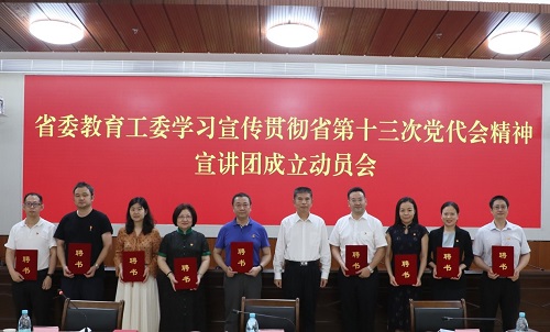 会上还向刘启宇等十位省委教育工委学习宣传贯彻省第十三次党代会精神宣讲团成员颁发了聘书。省委教育工委相关处室负责人和宣讲团成员参加了会议。