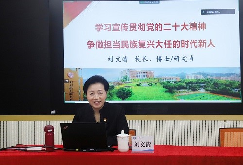 “当代青年生逢其时,施展才干的舞台无比广阔,实现梦想的前景无比光明。”在全国上下深入学习宣传贯彻党的二十大精神之际,11月10日,学校党委副书记、校长刘文清通过线上线下相结合方式,以“学习宣传贯彻党的二十大精神,争做担当民族复兴大任的时代新人”为题,给青年师生宣讲党的二十大精神,勉励大家坚定不移听党话、跟党走,怀抱梦想又脚踏实地,敢想敢为又善作善成,立志做有理想、敢担当、能吃苦、肯奋斗的新时代好青年,让青春在全面建设社会主义现代化国家的火热实践中绽放绚丽之花。