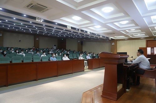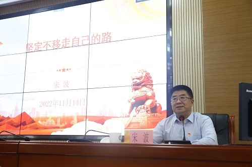 11月14日,学校副校长宋波在中山校区学术报告厅采用线上线下相结合方式,以“坚定不移走自己的路”为题,为分管部门全体党员干部和学工队伍宣讲党的二十大精神,同时也为辅导员队伍学习培训班进行开班第一讲。