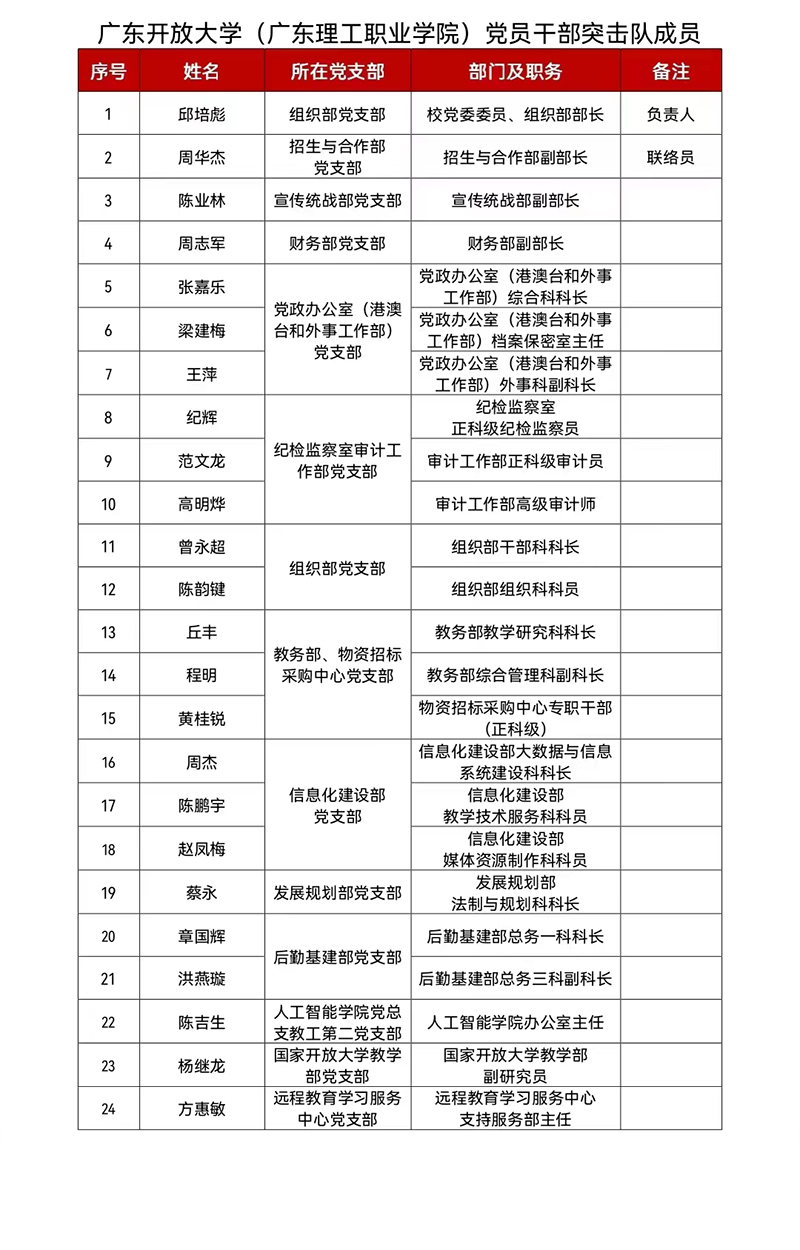 当前,广州市正面临抗疫三年以来最复杂、最严峻的疫情,防控工作正处在最吃劲、最关键的时期。接到上级关于组建党员干部全力支持广州打赢本轮疫情防控突击队的紧急通知后,学校高度重视、迅速响应,党委副书记、校长刘文清第一时间作出部署,要求迅速将通知精神传达到学校全体党员干部,迅速组建起强有力的突击队,迅速做好投入防控战斗准备。校党委副书记谢锦群具体指导发动组建工作。