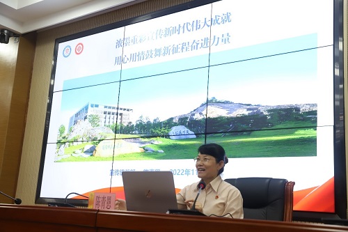 11月22日晚,学校宣传统战部部长陈青恩以“浓墨重彩宣传新时代伟大成就,用心用情鼓舞新征程奋进力量”为题,在中山校区学术报告厅面向学校新闻社全体成员、二级学院学生干部代表宣讲党的二十大精神。