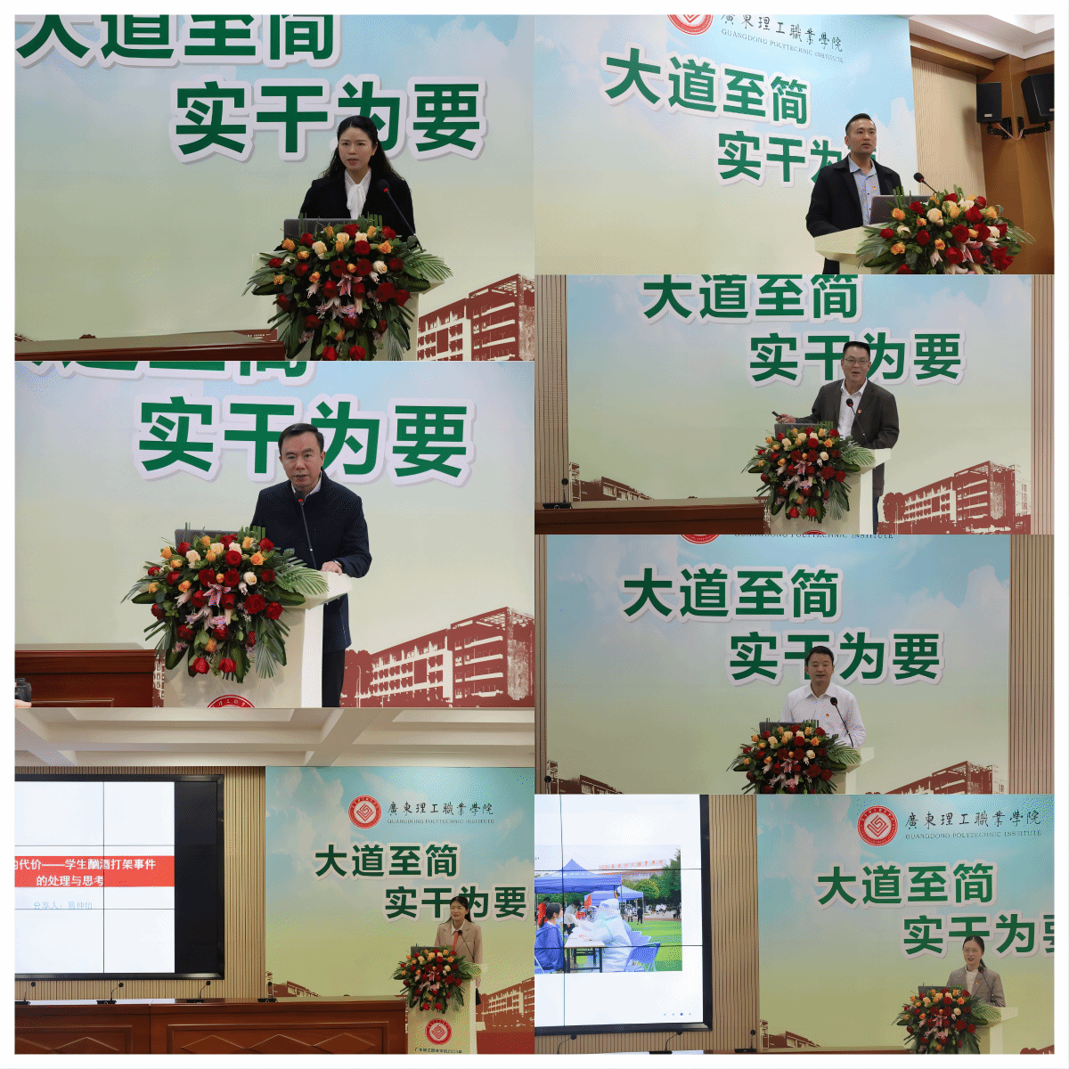 刘文清指出,2022年,全体学工队伍坚持以习近平新时代中国特色社会主义思想为指引,在学校党委和行政的坚强领导下,聚焦落实立德树人根本任务,围绕学校中心工作踔厉奋发、勇毅前行,学工体系不断完善、机制不断健全、队伍朝气蓬勃,各项工作取得显著成效。一是毕业生去向落实率全省第一,学生专插本升学率持续名列前茅;二是学校被评为广东省国防教育特色学校;三是“三全育人”理念在学校得到更广泛认同与融合,学校育人基础更加深厚、育人氛围更加浓郁、育人成效更加彰显;四是共青团工作取得新成效。