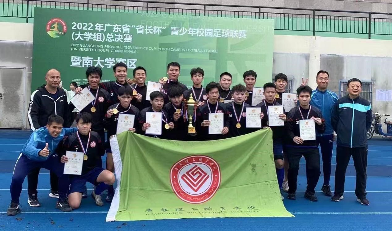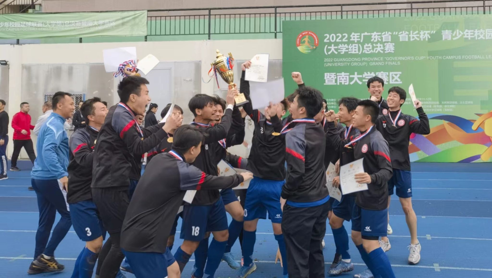 4月8日,由广东省体育局、广东省教育厅联合主办的2022年广东省“省长杯”青少年校园足球联赛(大学组)总决赛在暨南大学举行。学校男足对阵番禺职业技术学院,勇夺男子丙B组冠军,创学校足球参赛史上的新突破。学校副校长、体委会常务副主任孙平到场全程观赛,为球队加油鼓劲。