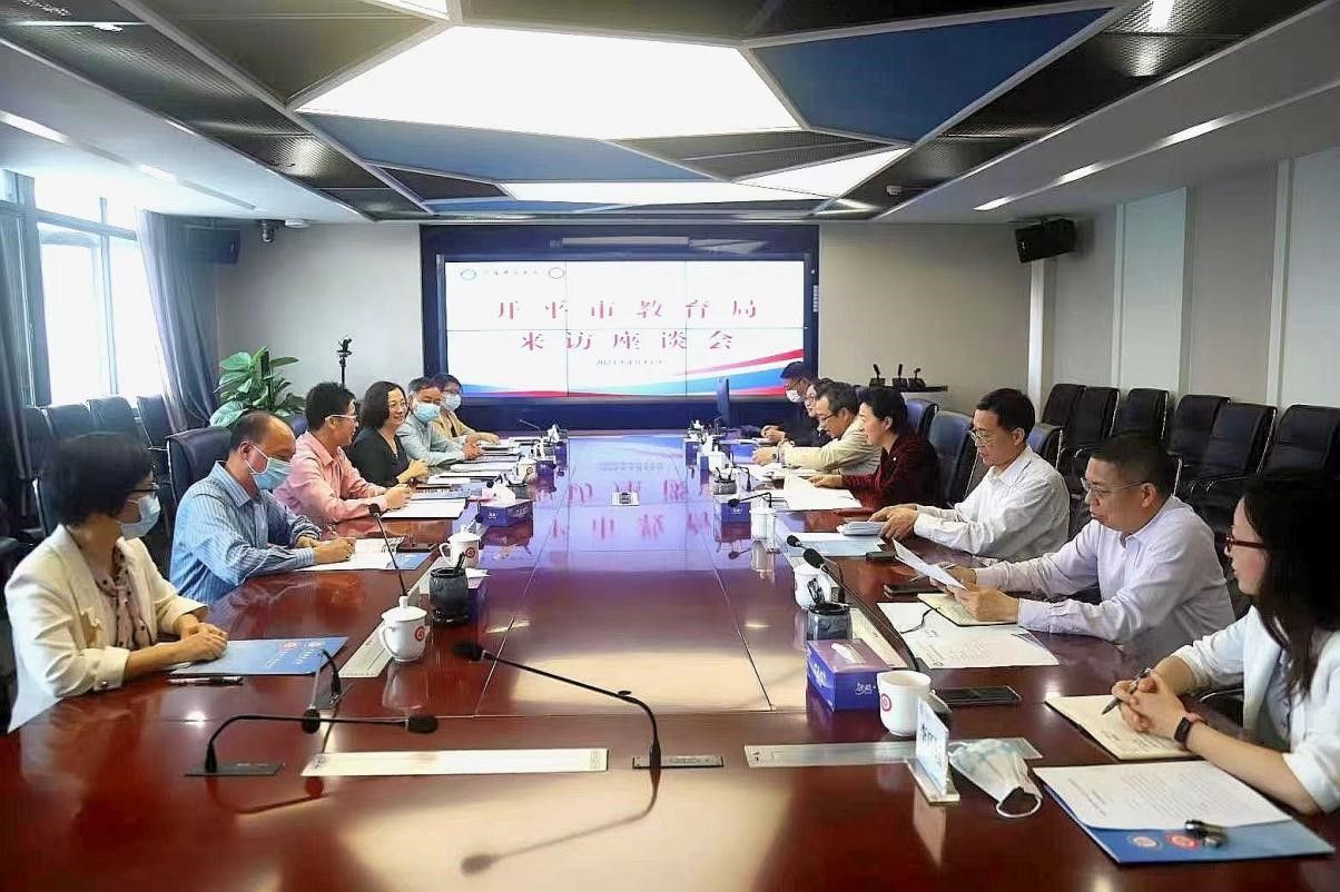 4月13日下午,开平市教育局党组书记、局长张峰带队来校进行工作交流,谋划推动双方在新征程上深化基础教育帮扶和加强职业教育合作。校党委副书记、校长刘文清主持座谈会,相关职能部门负责同志参加交流。