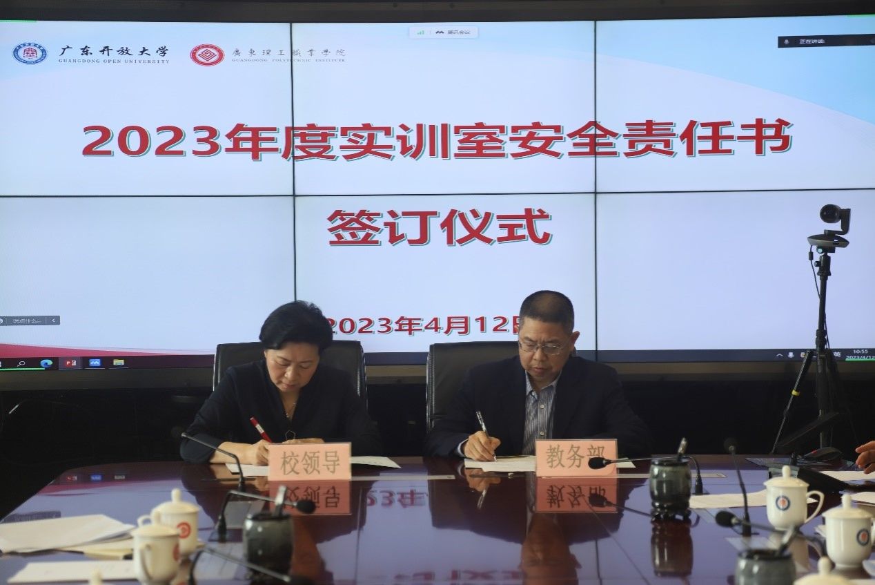 4月12日上午,学校召开教学工作暨实训室安全责任书签订会议。校长刘文清主持会议并讲话,副校长瞿志印,教务部、中职教育部、南海校区负责同志和各二级学院院长参加签订仪式。