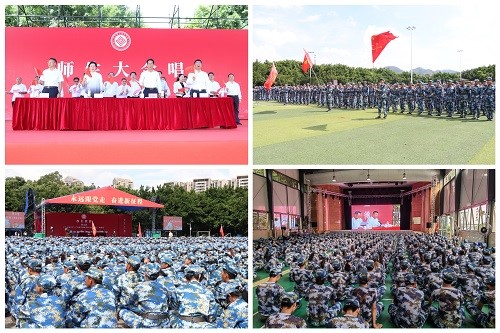 谢锦群宣读《关于表彰2023年新生军训先进集体及个人的决定》。孙平为2023年新生军训先进集体和个人代表颁奖。教师代表、新生代表先后发言,讲述教书育人的执着奉献,表达对大学生活的美好憧憬。