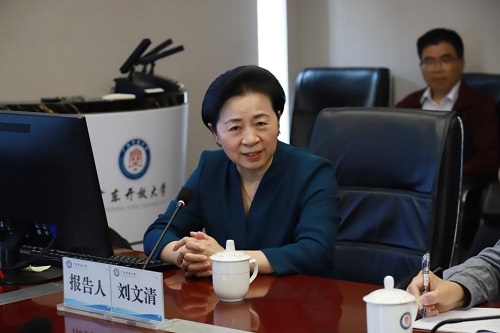 刘文清代表学校及基地对各位专家及嘉宾出席结题验收会表示欢迎和感谢。她表示,基地获得立项以来,建设团队积极推进项目建设,取得预期成效。一是标志性成果丰硕。获批全国教育规划课题(国家项目)等各类项目60多项、国家级教学成果奖等省级以上奖项20多项、高水平智库报告及论文50多篇。二是学科专业特色鲜明。服务和融入积极应对人口老龄化、粤港澳大湾区建设等国家战略,深耕老年教育、老年社会工作等领域,打造了省级重点建设学科老年学和省级高水平专业群智慧健康养老服务与管理。三是“三教”融通人才培养模式富有创新性。围绕统筹推进职业教育、高等教育、继续教育协同创新,组建了专兼结合的高水平研究队伍,探索开展专本硕一体化人才培养,育人成效显著。