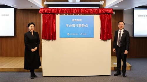 刘文清表示,港专学院前身为1947年成立的工人夜校,是一所历史悠久、富有民族情怀、兼具国际视野的优秀的应用型高等院校,自创办以来,累计培训68万学员,为推动香港职业专才教育的发展作出了巨大贡献。期望港专学院学分银行服务点利用学校优势强化终身教育服务窗口功能,规范管理机制,推动广东学分银行在粤港澳大湾区创新实践、开花结果,助力粤港澳大湾区教育互联互通。