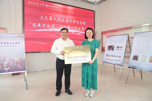 6月10日,三元里人民抗英斗争纪念馆“送展进校园”活动暨“思政第一课”在学校白云山校区举行。学校党委书记幸小涛以《追溯三元里抗英峥嵘岁月,勇担新时代青春奋斗使命》为题授课,结合图文展览,和广大青年学生一起回顾一百多年前三元里人民自发英勇抗击英国侵略者、誓死保卫家园可歌可泣的历史事迹,勉励大家把爱国之心化为报国之行,让青春在为推进强国建设、民族复兴伟业不懈奋斗中绽放出最绚丽的光彩。广州博物馆副馆长朱晓秋、学校党委副书记谢锦群出席活动并致辞。三元里人民抗英斗争纪念馆主任梁慕瑜,学校关工委副主任、原副校长余嘉强出席活动。